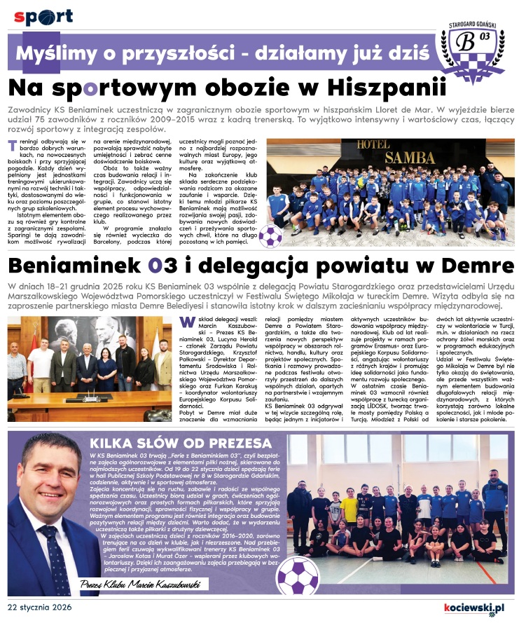 KLUB SPORTOWY BENIAMINEK 03 Najnowsze wiadomości w “ Wieści Z Kociewia” 22 stycznia, 2026 Zapraszamy do lektury tutaj Share this content: Continue Reading Previous Zawodnicy klubowej sekcji kick-boxingu na obozie w SwarożynieNext WYLICYTUJ NA NASZYM FACEBOOKU TRENING INDYWIDUALNY Z TRENEREM BENIAMINKA 03!