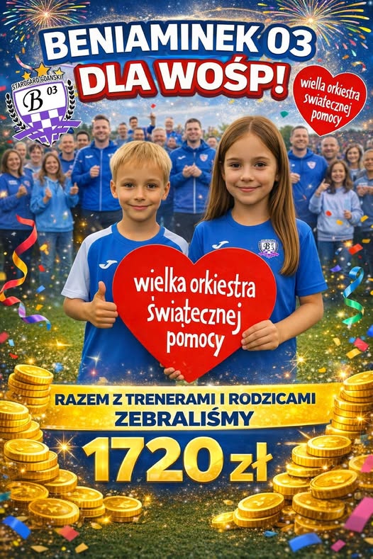 Dzięki wsparciu i zaangażowaniu naszych Rodzicow, Kibiców, Sympatyków oraz Trenerów uzbieraliśmy i przekazaliśmy jako KS Beniaminek 03 ogromną kwotę na tegoroczną zbiórkę WOŚP ![]()